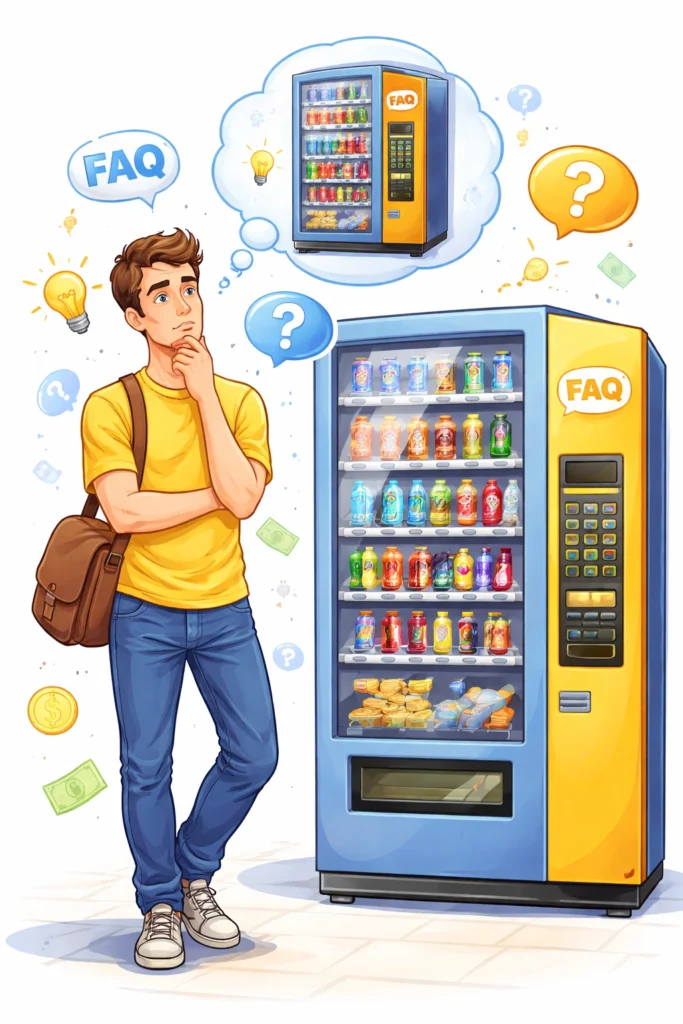 Frequently asked questions about vending machine business in India, including cost, profit, setup, and locations.